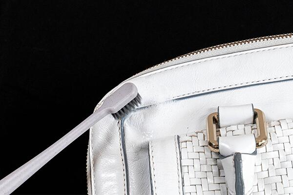 布やブラシでやさしくなでるように汚れを落とします。